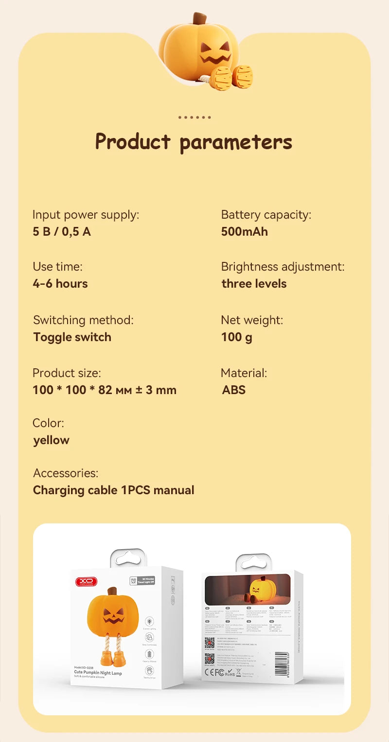 Luz nocturna de calabaza, lámpara segura de silicona suave, decoraciones con temporizador, decoración de cabecera regulable, regalos de Halloween para niños y bebés